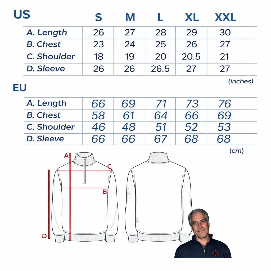 Our fit runs true to size — designed to be balanced, comfortable, and easy to wear. For a classic look, choose your regular size.